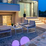 Turisterna kan besöka Pefkari-stranden 2 km från lägenheten. Den här lägenheten med 6 rum ligger inom 10 minuters bilresa från Potos strand.